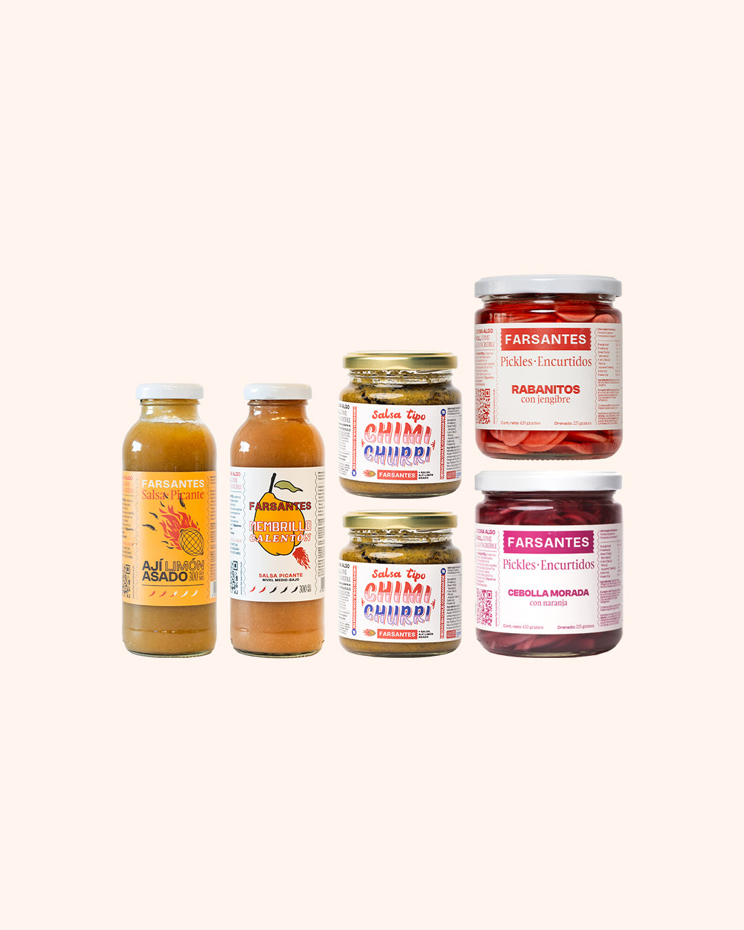 Un pack pensado para asadorxs: picor medio con el ají limón asado, el chimichurri más farsante para la parrilla y encurtidos cítricos para levantar cualquier plato. Perfecto para acompañar carnes, empanadas, choripanes, ensaladas o simplemente picotear en buena compañía.